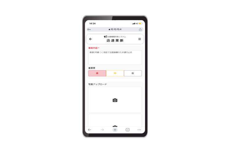 また、外部インターネットを利用したシステムのため、現地の職員が撮ったリアルタイムの現場写真を送信されるなど現場と本部が迅速に情報共有できたことでこれまでより具体的で的確な指示を出すこともできた。